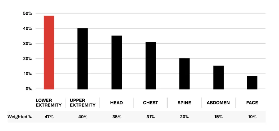 Nota: los porcentajes no suman el 100%, ya que un motociclista puede sufrir lesiones en más de una región del cuerpo.